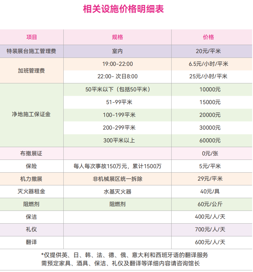 1.展馆只负责提供水管与给水设施的接驳服务,水管、材料与展商设备端的接驳,以及设备端与下水的由申请人自行负责: 2.在10月10日至开展前电报在上述价格的基础上加收50%的加急费: 3.对于已按要求安装到位的水源移位服务申请,将按原申请服务项目价格的50%的收取变更施工费。