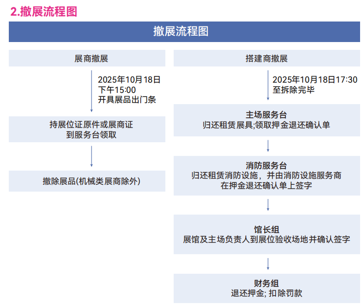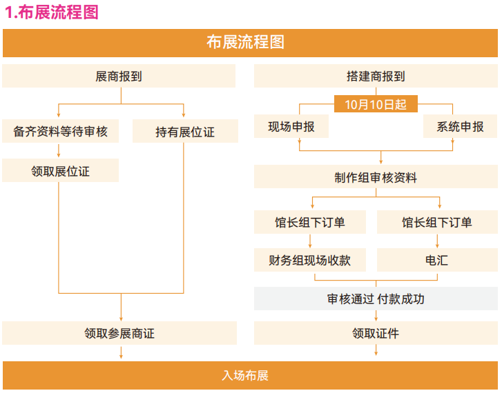 4-5.特装展位设计及搭建 1、图纸资料申报相关说明 所有图纸要求清晰完整,并在图纸明显位置注明展位号,清晰详尽的电路图。注明用电性质(机械设备用电和照明用电要单独电路开关控制,不允许混装)、总功率、总开关和各级保护开关的额定电流值和电压等(220V/380V),注明所采用线缆型号和敷设方式。 电路图注明展位的总配电箱位置:注明灯具等电器的种类、功率和安装位置。上述所有申报资料必须填写清晰完整并加盖公章,通过全国糖酒会官方网站“主场服务通道”入口进行申报,申报图纸通过后,请通过银行对公账户缴纳相关报馆费用。 申报图例: 注:结构施工图中需要包含承重结构大样图。 2、净地展位施工管理要求及细则 严格遵守《中誅澄剀繹餛哨人民共和国安全生产法》、《中华人民共和国消防法》、《大型群众性活动安全管理条例》等法律法规。遵守全国糖酒商品交易会的施工管理规定并配合管理人员的监督、检查,确保展台结构安全和人身安全。 (1)结构安全 ① 展位搭建不得超过限定高度,不允许搭建任何形式的二层展台。严格遵守现场净地展位限高5m,C、D类标准展位改净地限高4m。C、D类标准展位如需改装或自行搭建,参展单位须于布展开始日15日前向主场服务商进行申报,经组委会同意并缴清费用后,按净地展位要求办理申报手续,未做提前申报,组委会有权拒绝其入场。 ② 搭建单位需根据展会施工管理规定进行设计施工,提供施工图纸审核并缴纳净地施工管理费及保证金。搭建单位搭建的展台正投影应在地面划线范围内,如有超出的,组委会和主场服务商有权责令搭建单位拆除超线部分,所产生费用和责任由搭建单位自行负责承担。 ③ 展台结构的设计施工强度应满足承受荷载所需的强度要求,严格按照国家相关部门的安全规定设计施工。搭建单位应确保展位整体结构具有满足荷载所需的强度和稳定性,钢结构材质符合国家标准,焊接和连接件符合国家相关部门安全要求标准。 ④ 展台结构主体墙落地厚度不小于150mm,以轻钢龙骨为主体的落地厚度不小于8cm,无框架结构的特装展位木质墙体厚度不得小于35cm,以确保墙体与地面的接触面积,且高度超过3m的木质墙体必须有方钢或无缝圆管做内撑;木质结构单跨不得超过6m,钢结构和钢木混合结构(包括内衬钢质方筒、铁架)单跨不得超过8m。背墙和前面展示部分应加钢结构连接,下部需加钢结构立柱支撑并加底盘,底盘直径不小于600mm,支撑立柱不得直接立于地台上方,保证展台整体的强度和稳定性。架结构必须使用专业架结构(需提供出厂设计说明书或有资质的设计单位提供的设计图备查),严禁使用自行焊接的架;架立柱与梁之间必须使用金属紧固件并咬合紧密,无间隙无晃动。 ⑤ 所有顶部加设横梁连接的净地展位,须提供横梁与主体连接的细部结构图,结构强度应当满足荷载所需要的强度。横梁与立柱之间的连接必须使用螺栓或者其他安全固定材料,严禁使用铅丝、铁丝、钢丝等搭接、捆绑等简易连接方式。主体构件的连接方式不得使用枪钉或木纹螺丝,必须使用螺栓满位紧固。门楣、天花横梁与墙体连接必须使用支撑结构或嵌入墙体内,杜绝侧面连接结构。 ⑥ 使用玻璃材质装饰展台的,必须采用钢化玻璃(幕墙玻璃厚度不小于10mm),玻璃的安装方式须合理、可靠,必须制作金属框架或采用专业五金件进行玻璃安装,框架及五金件与玻璃材料之间须使用弹性材料做垫层,确保玻璃使用安全。大面积玻璃材料应粘贴明显标识,以防破碎伤人。若使用玻璃地台,则结构支撑立柱、墙体必须固定于地台下方,不得直接在光滑玻璃面上方搭建展台结构,确保结构稳定。 ⑦ 主体承重钢结构立柱底部应加配重钢板(直径不低于600mm)以增加立柱的受力面积,加强展位的牢固性。立柱应使用直径100mm以上、壁厚2mm以上的钢管,金属结构立柱底座尺寸应按照展位整体载荷计算确定,立柱必须焊接在底座的中心位置。底部焊接底盘,上部焊接法兰盘,以增加连接点接触面积,必须使用整管,不能拼接,立柱不能直接放置在地台上,必须直接落地接触地面以增加主体稳定性。木质承重立柱应采用连续实体材料,保证结构完整,接合部位应保持连接牢固。金属结构灯柱直径须在10cm以上,底部须有面积不小于100cmx100cm、厚度不小于6mm的配重钢板,并进行加固确保稳定:木质承重立柱应采用连续实体材料,保证结构完整,接合部位应保持连接牢固。 ⑧ 承重构件所采用的角钢、槽钢、方钢(管)等材料必须为合格产品,不得采用装饰用的柔性金属材料或脆性材料。型材如使用角码,角码宽度必须大于50mm,厚度必须大于5mm,且使用钢螺栓连接。不得使用管壁小于0.8mm的薄壁受力构件,也不得使用严重锈蚀的受力构件。外挂(吊装)式构件必须是金属框架并和金属主体结构连接,用螺栓紧固。 ⑨ 展会开展期间,搭建单位须留电工、木工等人员现场值班,发现问题及时处理。除此以外压住电箱的展位,搭建商应对参展商进行义务告知,一旦发生断电情况应及时与参展商沟通处理。 (2)消防、电检安全 ① 展台搭建材料的选用要符合国家有关部门关于临时性建筑材料的使用标准,并结合展览会的特点合理选材,选材要符合国家环保要求。除展品外,展台或其他建筑所使用的所有物品(如墙体、地毯、地板、吊顶、灯箱、墙面喷绘等搭建、装修、装饰